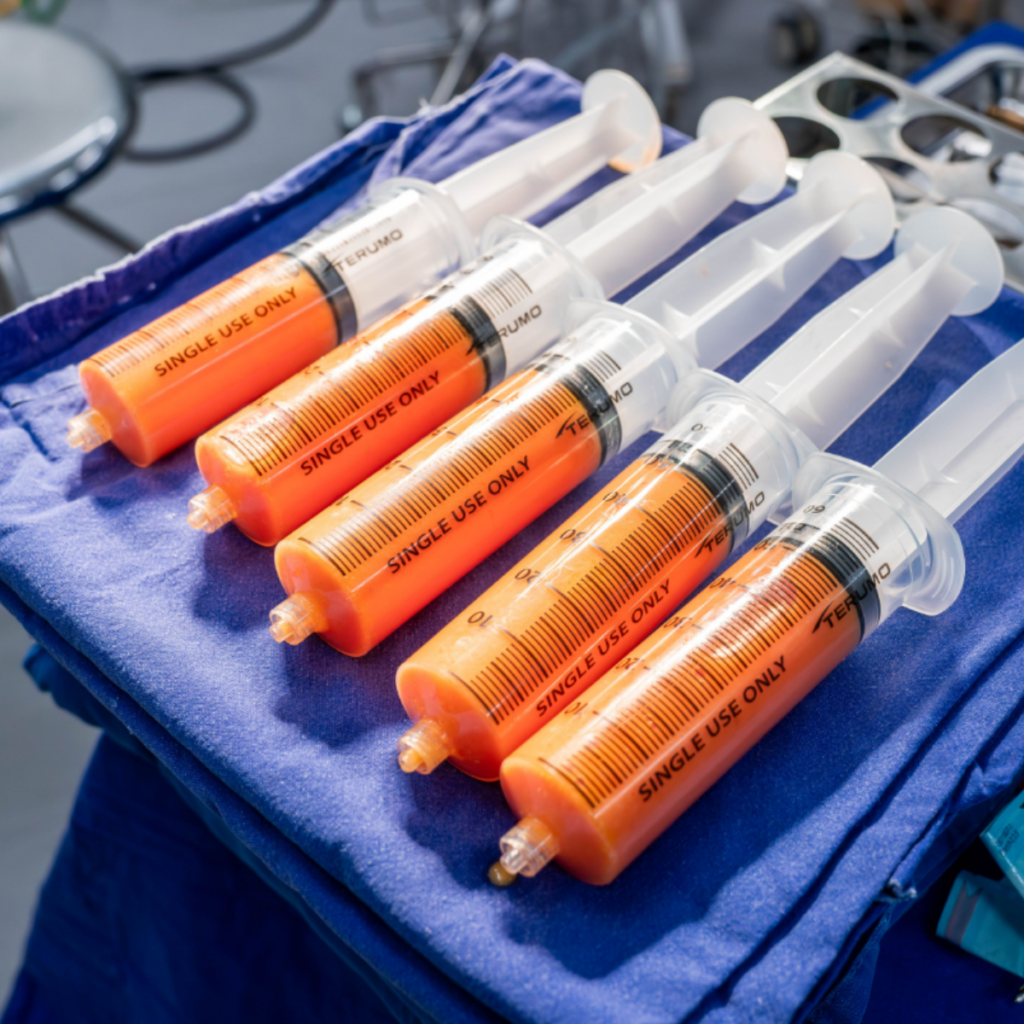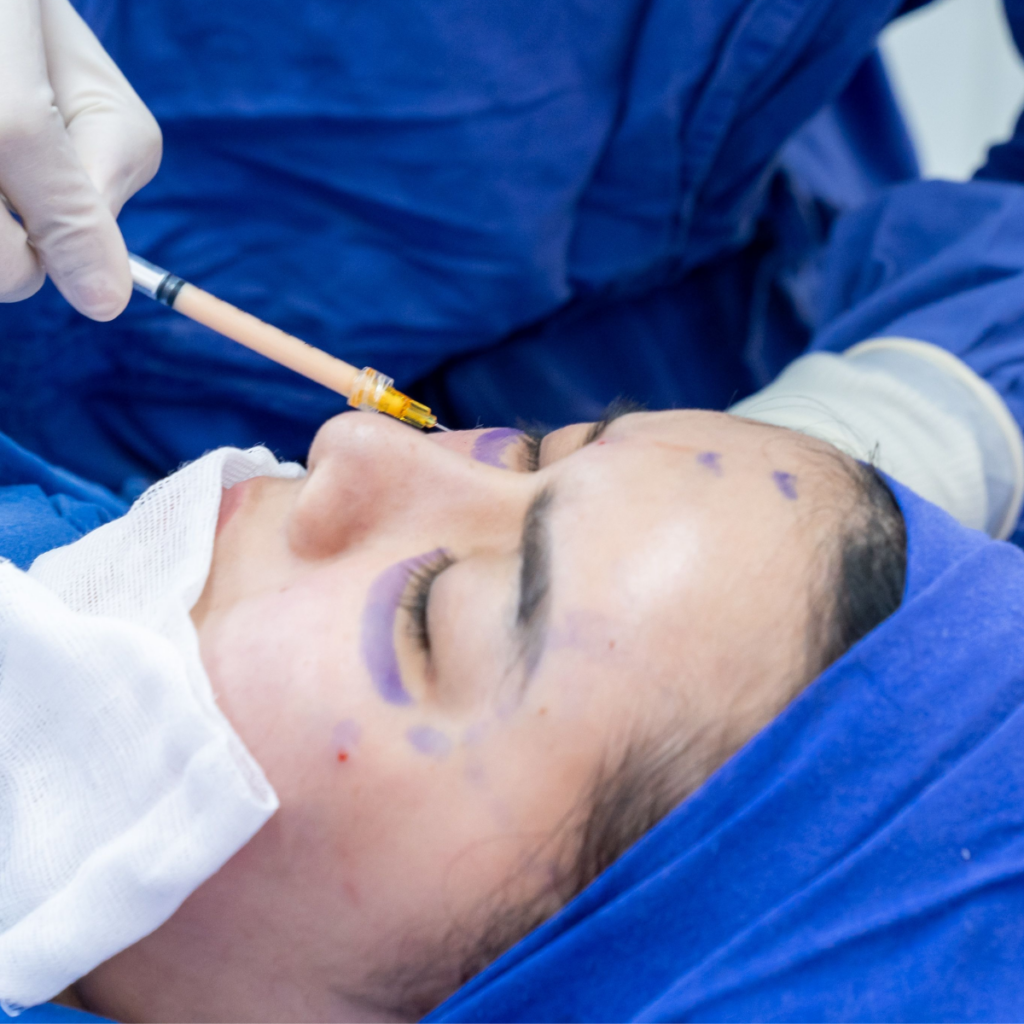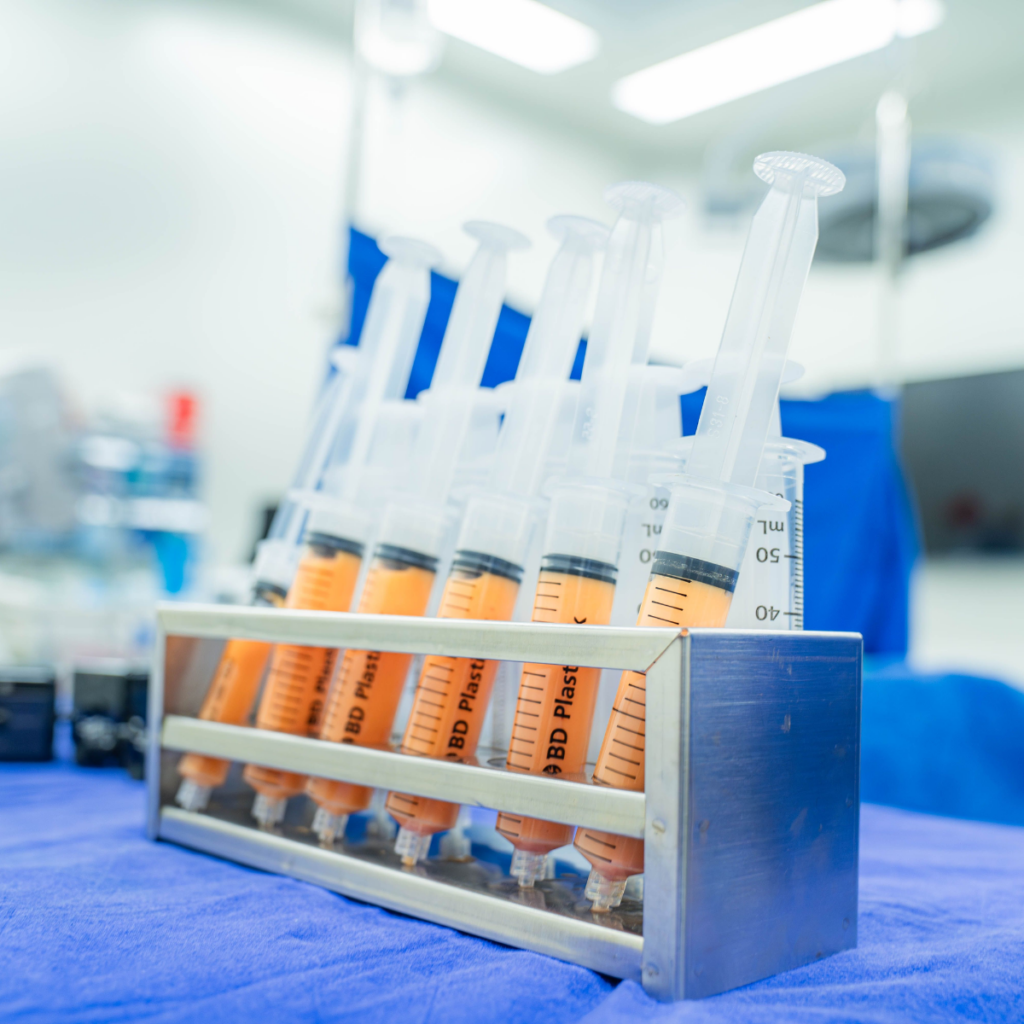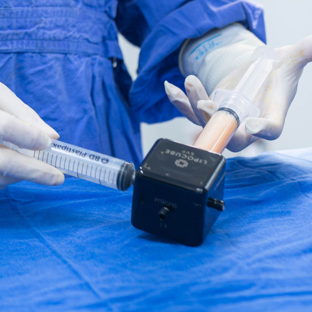 แพทย์จัดเตรียมไขมันให้พร้อม บรรจุเข้าอุปกรณ์ฉีดไขมัน และทำการปลูกถ่ายเซลล์ไขมัน เข้าไปในตำแหน่งที่ต้องการ